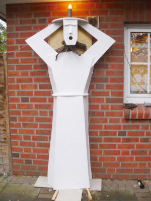 Mensch geworden“ mir eine weitere Anregung. Ich plazierte zu Füßen des Engels einen Futtertrog für Küken.